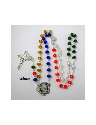 Rosary in 4mm plastic, enameled in assorted colors with a candy-shaped jar.
