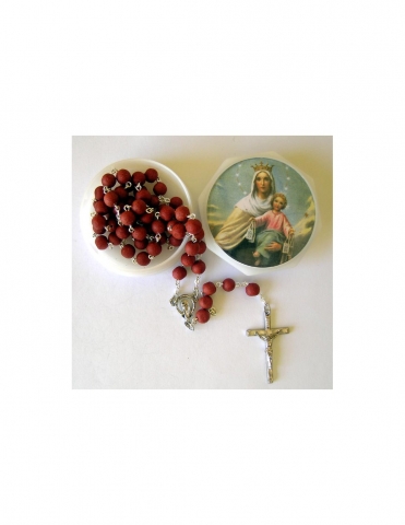 Rosary wood light color with Mary with the photo of Fray Leopoldo. 6 mm Ø and 10 mm long barrel beads.