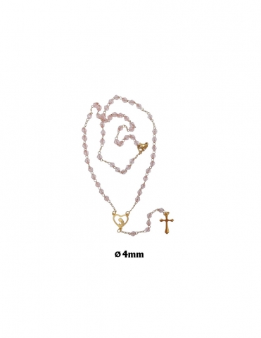Rosario con cuentas de cristal rosa en forma de rombo Y Maria en Forma Corazón.