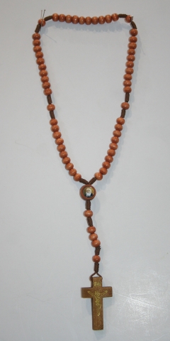 Rosario madera color claro con maría con la foto de Fray Leopoldo. Cuentas redondas de 6 mm Ø y 5 mm de alto.