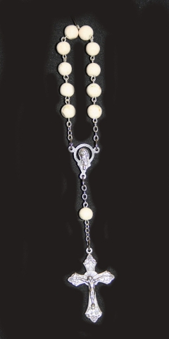 Rosario de un misterio con las cuentas elaboradas con pétalos de jazmín. Tamaño de la cuenta 6 mm Ø.