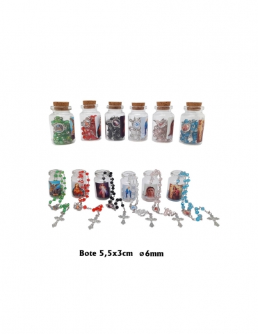 Rosario con cristal tallado 6 x 4 mm en bote de cristal con tapón.