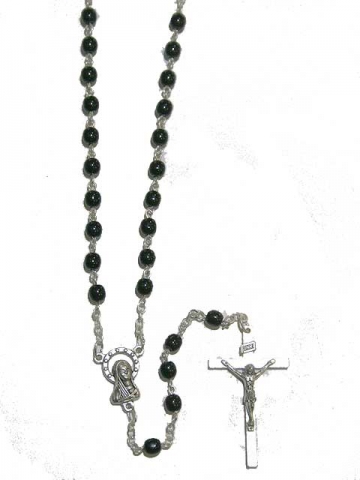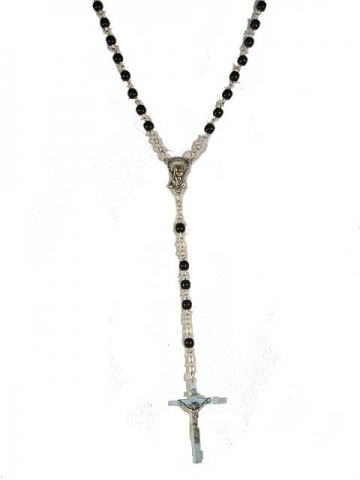 Rosario cristal negro con perla. Cuentas de 5mm,
