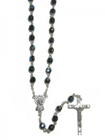 Rosario cristal negro facetado.Cuentas de 6mm,