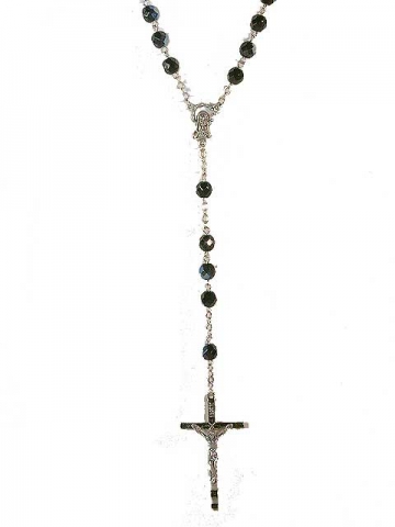 Rosario con cuentas de cristal tallado en color negro. Medida de 7mm