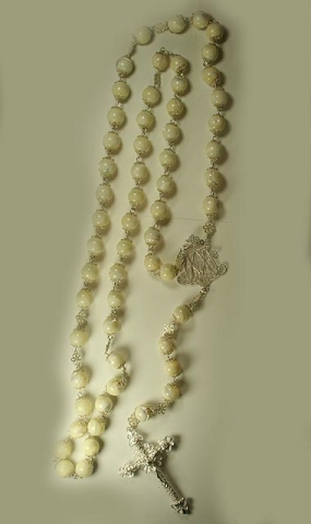 Rosary with ball of mother-of-pearl 6 mm and with María and cruz of Alpaca.
