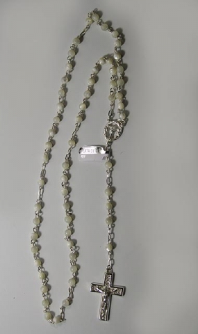 Rosario con bola de nacar 4 mm con Maria y Cruz de plata de ley.