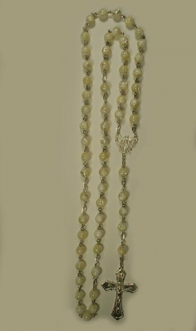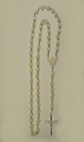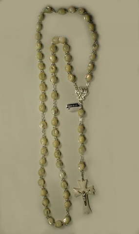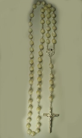 Rosary with ball of mother-of-pearl 8 mm and with María of Silver of Law and mother-of-pearl Cruz.