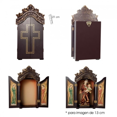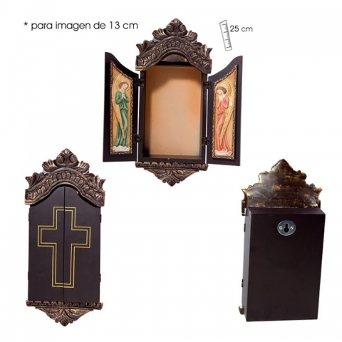 Armario para colgar en la pared, para imagénes hasta 13 cm en resina decorada marrón. Diseño Giordano di Ponzano. Medidas 10x6x25 cms.