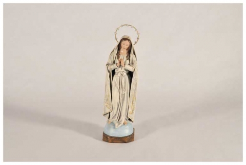 Virgen de Fatima 21 cm en barro con tela policromado de Belenes Galán en 21 cm.