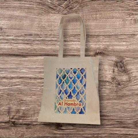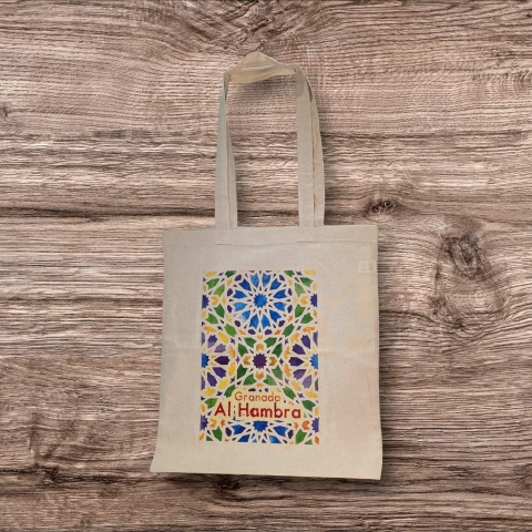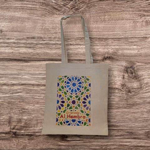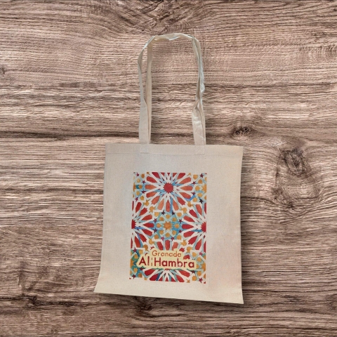 Fabric bag measuring 37 x 40 cm. Alhambra Teselas Collection Designed by Babel. The multipurpose bag with the hidden spell of the Alhambra. At an irresistible price.