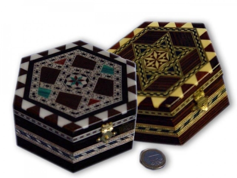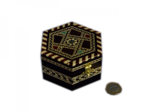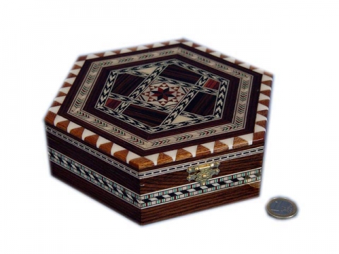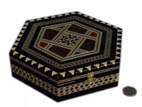 Hexagonal taracea jewellery box 15x8.5 cm.