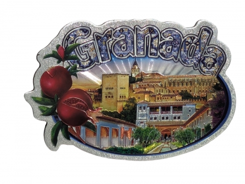 Imán metalizado Granada. Medidas aproximadas 9x6 cm.
