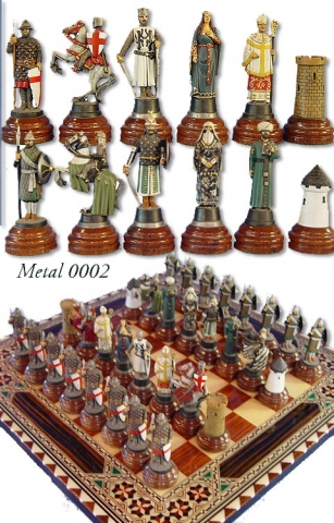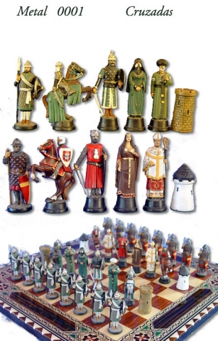 Ajedrez Cruzadas. Sólo fichas en metal policromadas . Para Tableros 40x40 cm.