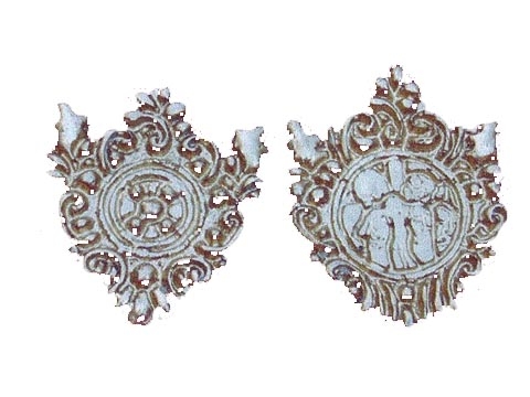 Cuarterones plateados para canastilla en resina. Medidas 3x2.8 cm. Juego 2 unidades