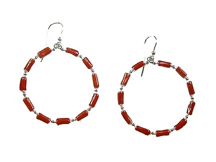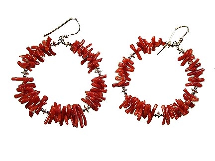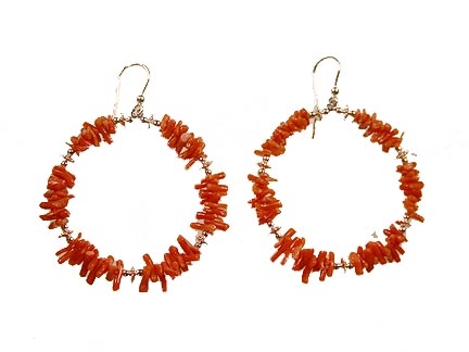 Silver hoops with coral. Measure 4 cm.
