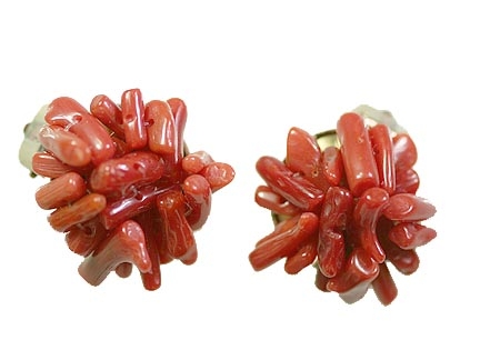 Pieces of coral earrings with plated metal clips on Measure 2 cm.