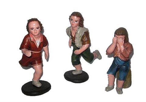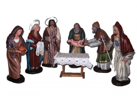 San Jose carpintero,Virgen y Niño.barro en 21 cm.
