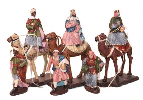 Reyes a Camello y pajes de Almansa . barro en 21 cm.