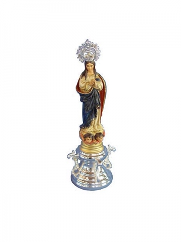 Purísima policromada sobre peana de metal plateado. 25 cms.