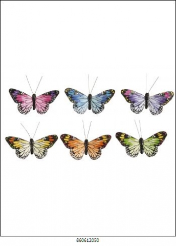 Butterfly with 11cm clip made on feathers, painted by hand. Set of 6 models.
