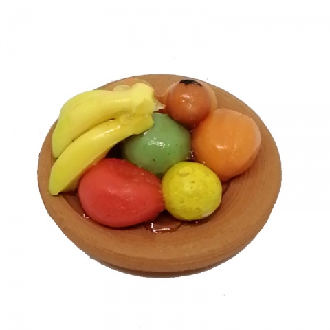 Plate Model C: Assorted vegetables: bananas, lemons, apples, oranges, tomatoes. Measurements Plate 5 mm height and 3 cm Ø.