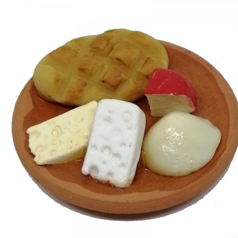 Plato Modelo E: Pan y Quesos . Medidas Plato Blanco 4 mm altura y 2.2 cm Ø .