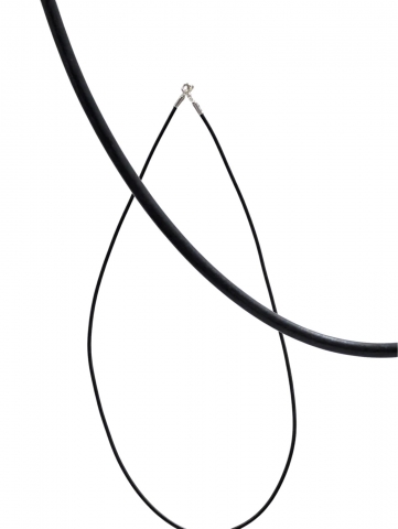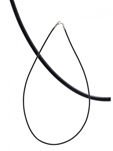 Cordón caucho de color negro con terminales de plata de ley . Disponible en 40, 45 y 50 cm.