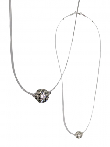 Invisible thread cord (steel or nylon) with sterling and ball silver terminals with strass or stones. Available at 40, 45 and 50 cm. Orientative photo because the balls can vary in shape and colors.