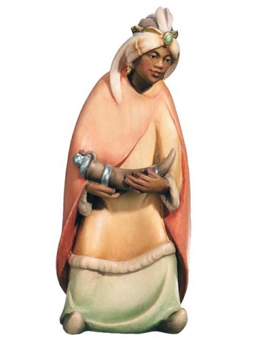 Rey mago negro en madera natural con oro. Figura de 8cm