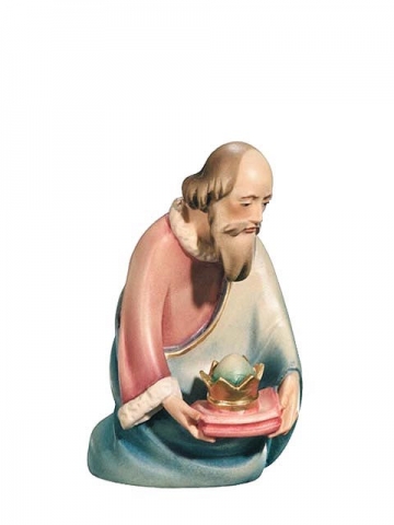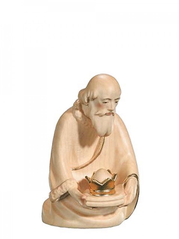 Kneeling wise man in wood natural with gold.Figures of 8cms.