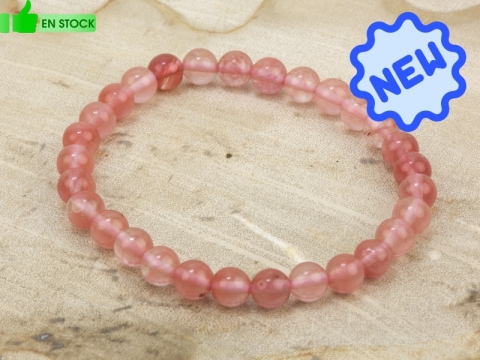 Pulsera de Rodocrosita. Medida: 6 mm Ø. Fotos orientativas debido a la singularidad de la piedra.
