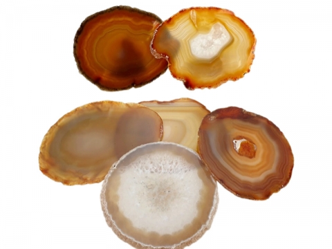 Lamina de Agata Natural. Medidas aproximads : 7-9 cm Ø. Fotos orientativas debido a la singularidad de la piedra. El precio es por Unidad.