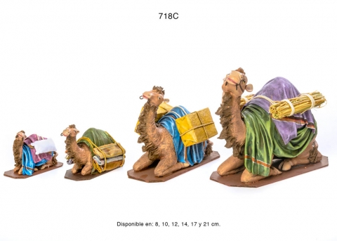 Camello tumbado con carga de estilo hebreo clase extra en barro lienzado, serie 700. Realizado por figuralia. Foto orientativa debido al carácter artesanal de la misma. Disponible en varios tamaños.
