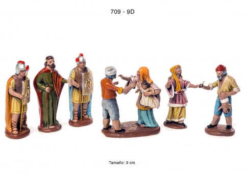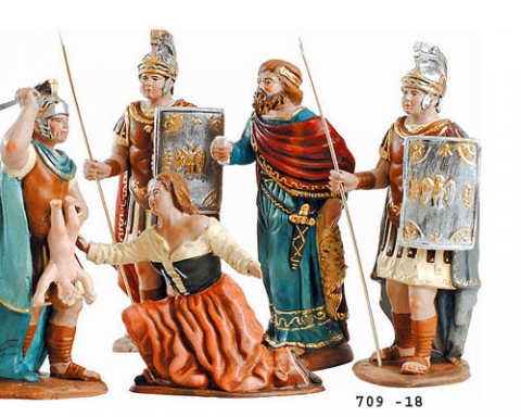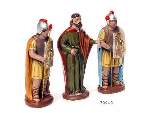 Herodes y soldados, grupo de 3 piezas estilo hebreo clase extra en barro enlienzado, serie 700. Realizado por figuralia