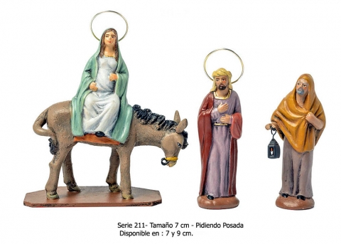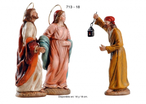 Pidiendo posada, grupo de 3 piezas estilo hebreo clase extra en barro enlienzado, serie 700F. Realizado por figuralia.
