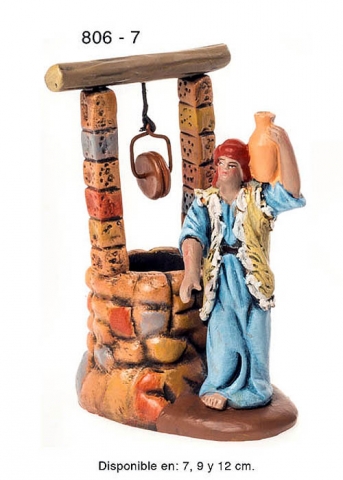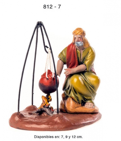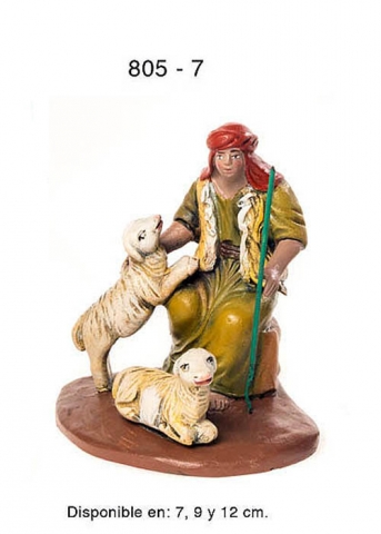 Shepherd with sheep adoring in Samaritan style in linen cloth, series 800. Made by Figuralia. Orientative photo due to the handmade character of the piece.
