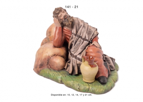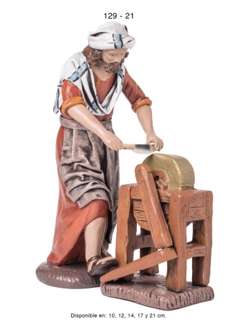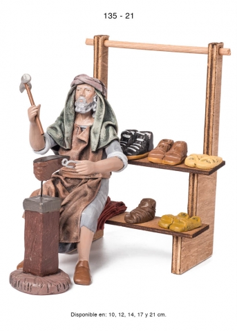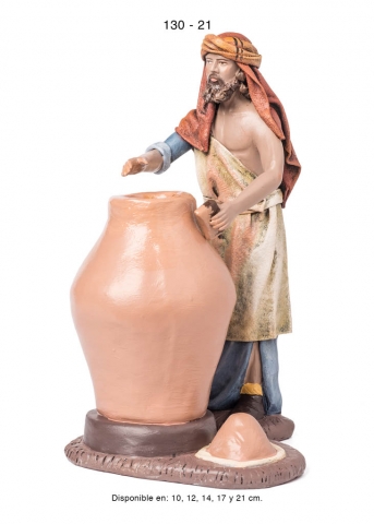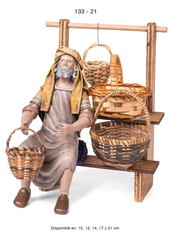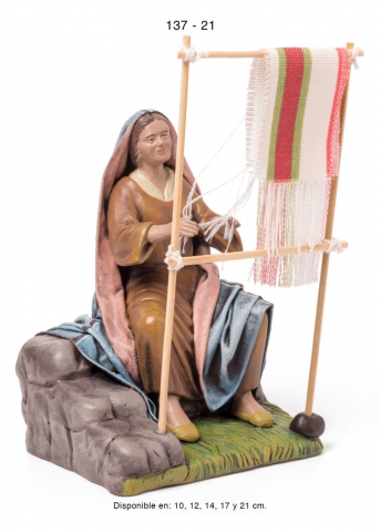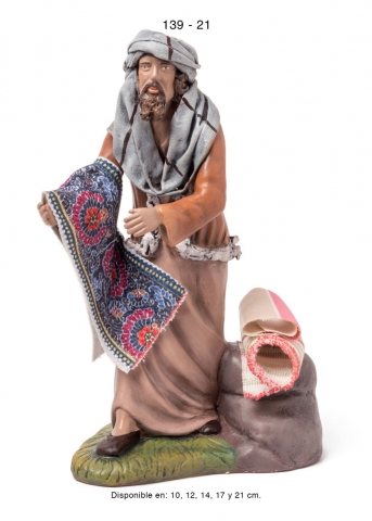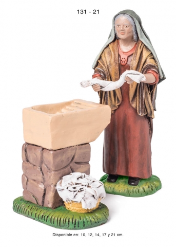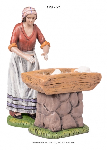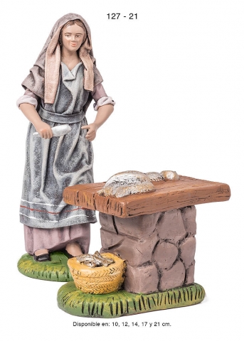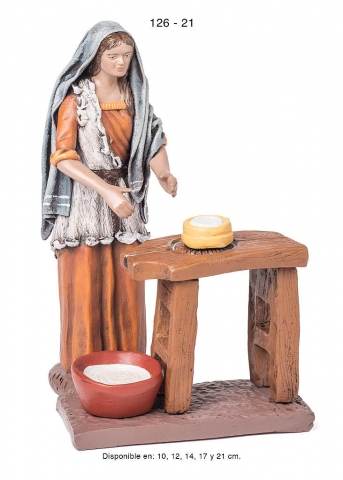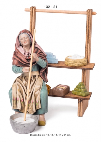 Pastora con puesto de jabones, estilo hebreo en barro lienzado, serie 100. Realizado por Figuralia.