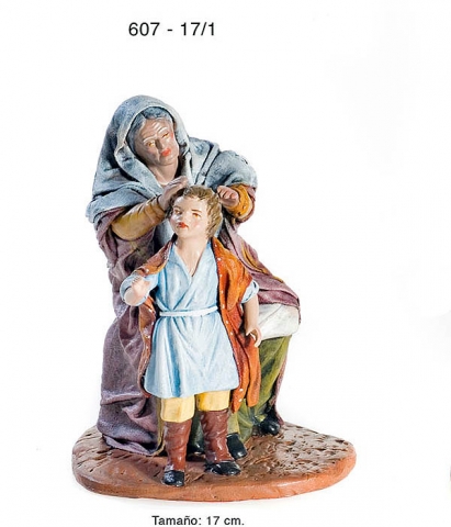 Grupo de Pastores en estilo Hebreo en barro lienzado, serie 600. Realizado por figuralia en 17 cm.