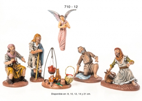 Model 311: Shepherd group warming up at the stake. Samaritan style shepherds, bonded clay, series 300. Made by figuralia in 12 cm. Orientative photo due to the handmade character of the piece.