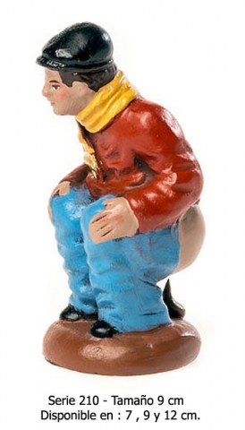 Pastor evacuando. Pastores de estilo hebreo clásico en barro, serie 200C. Realizado por figuralia. Foto orientativa debido al carácter artesanal de la pieza.