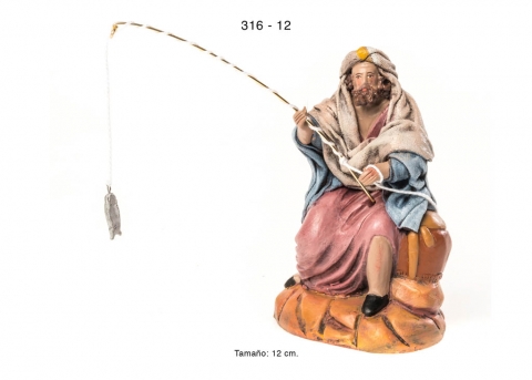 Model 316: Shepherd fisherman. Samaritan style shepherds, bonded clay, series 300. Made by figuralia in 12 cm. Orientative photo due to the handmade character of the piece.