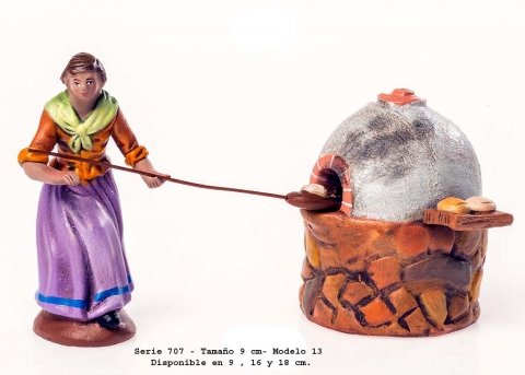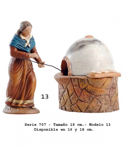 Modelo 13: Grupo Pastora con horno. Grupos de pastores de estilo Salzillo, serie 700C. Realizado por Figuralia. Foto orientativa debido al carácter artesanal de la pieza.