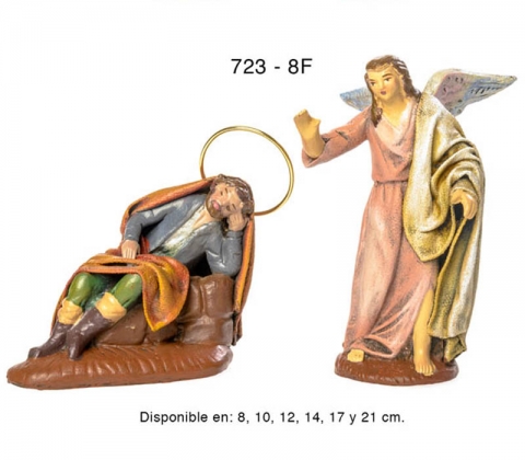 Sueño de San José, grupo de 2 piezas estilo hebreo clase extra en barro enlienzado, serie 700F. Realizado por figuralia. Foto orientativa debido al carácter artesanal de la pieza.