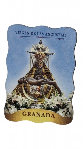 Imán de la Virgen de la Angustias 4.5 cm Ø. en madera.
