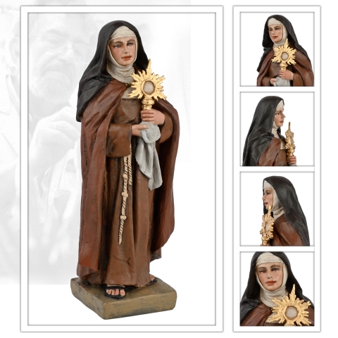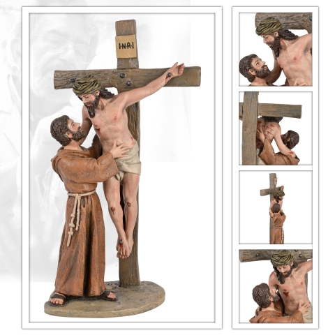 Group of Saint Francis embracing the crucified Jesus. . Height 16 cm. In ceramic paste and acrylic polychrome modeled by the Mayo artistic workshop.