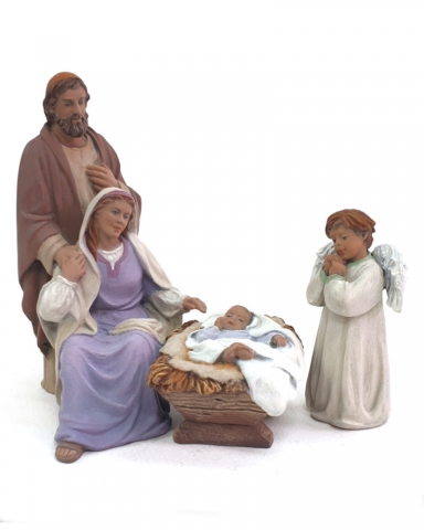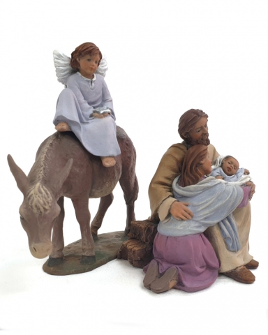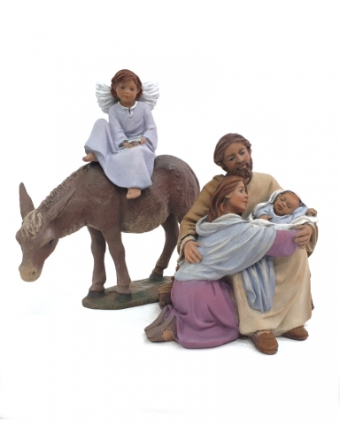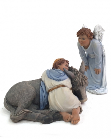 Set 90: Saint Joseph with child, Mary, angel with star and lying donkey.