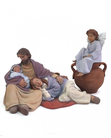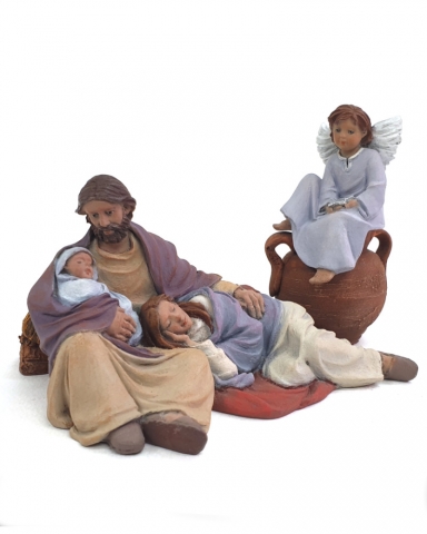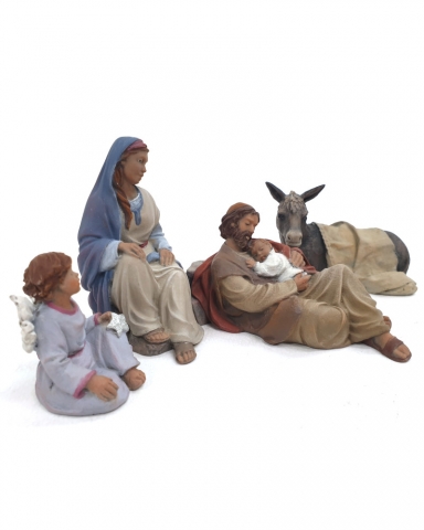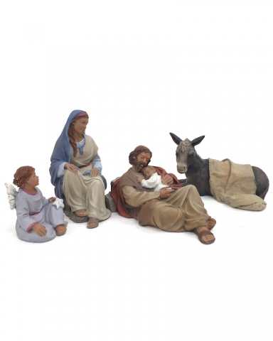 Conjunto 90 : San José con niño, María, angelito con estrella y burra tumbada.