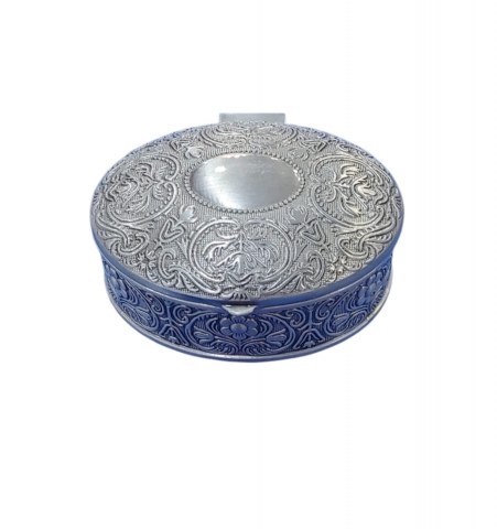 Caja Plateada Oval. Medidas (Largo*Ancho*Alto): 9*7*3CM
