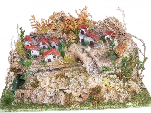 Pueblo con cascada . Medidas: 38x40x21 cm.